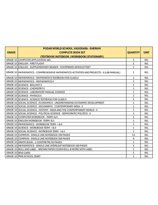 CBSE Grade 10 - (Podar World School Sherkhi) (A.Y. 2026-27)