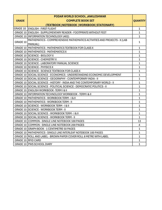 CBSE Grade 10 - (Podar World School Ankleshwar) (A.Y. 2026-27)