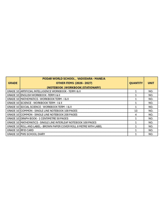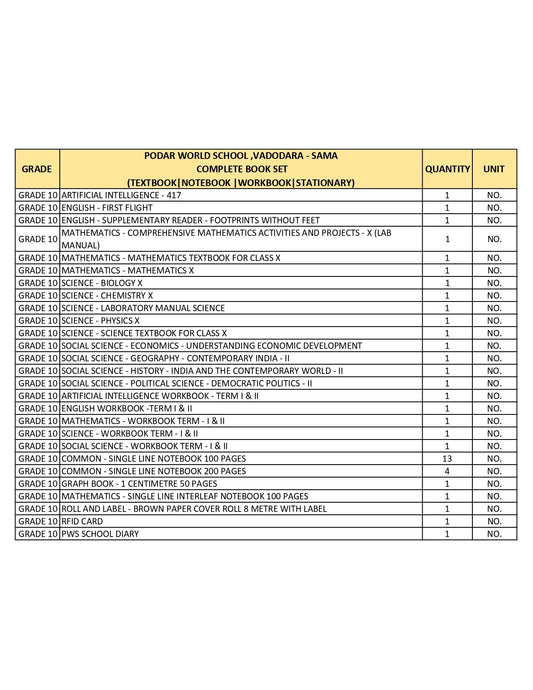 CBSE Grade 10 - (Podar World School Sama) (A.Y. 2026-27)