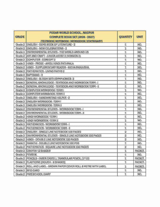 CBSE Grade 2 (Podar World School Vapi) (A.Y. 2026-27)