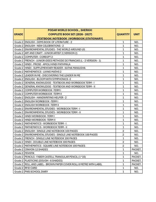 CBSE Grade 2 (Podar World School Sherkhi) (A.Y. 2026-27)