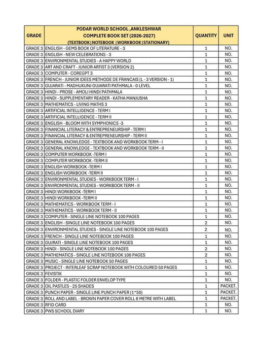 CBSE Grade 3 (Podar World School Ankleshwar) (A.Y. 2026-27)