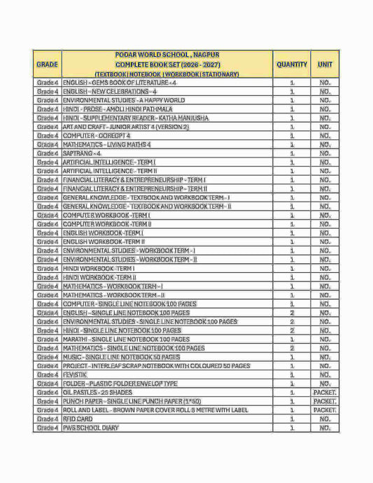 CBSE Grade 4 (Podar World School Nagpur) (A.Y. 2025-26) (Copy)