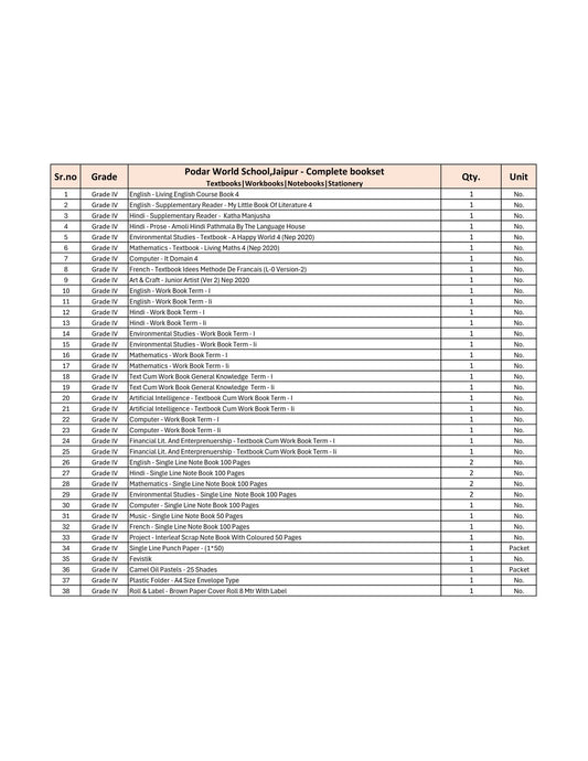 CBSE Grade 4 (Podar World School Jaipur) (A.Y. 2025-26)