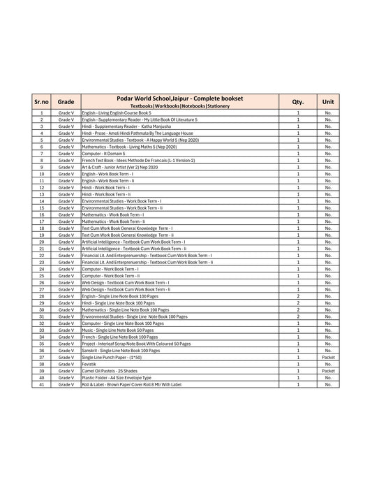 CBSE Grade 5 -(Podar World School Jaipur) (A.Y. 2025-26)