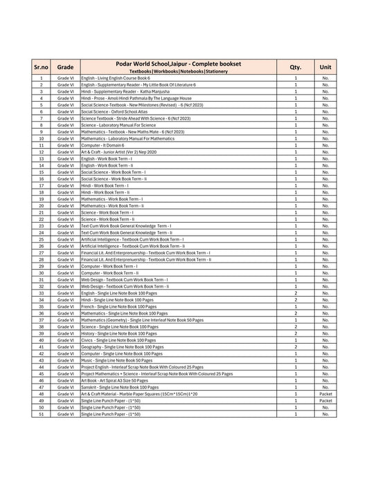 CBSE Grade 6 - (Podar World School Jaipur) (A.Y. 2025-26)