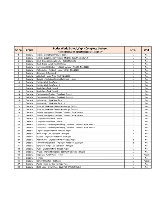 CBSE Grade 4 (Podar World School Vapi) (A.Y. 2025-26)