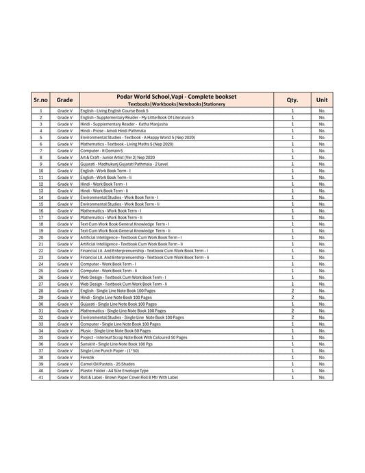 CBSE Grade 5 -(Podar World School Ankleshwar) (A.Y. 2025-26)