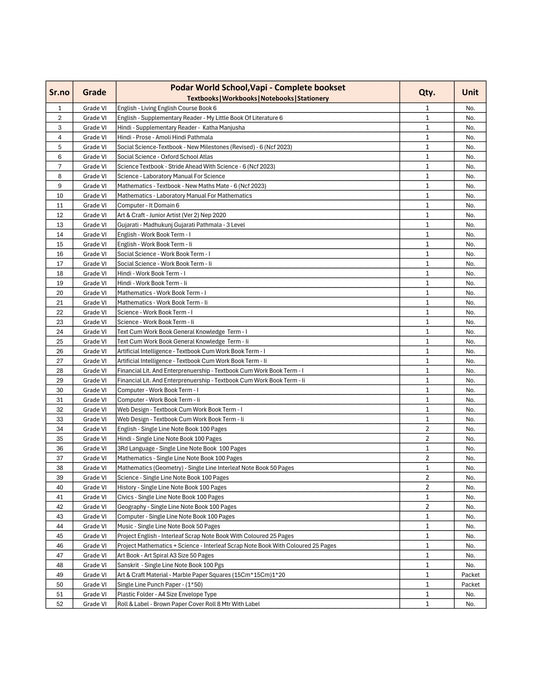 CBSE Grade 6 (Podar World School Vapi) (A.Y. 2025-26)