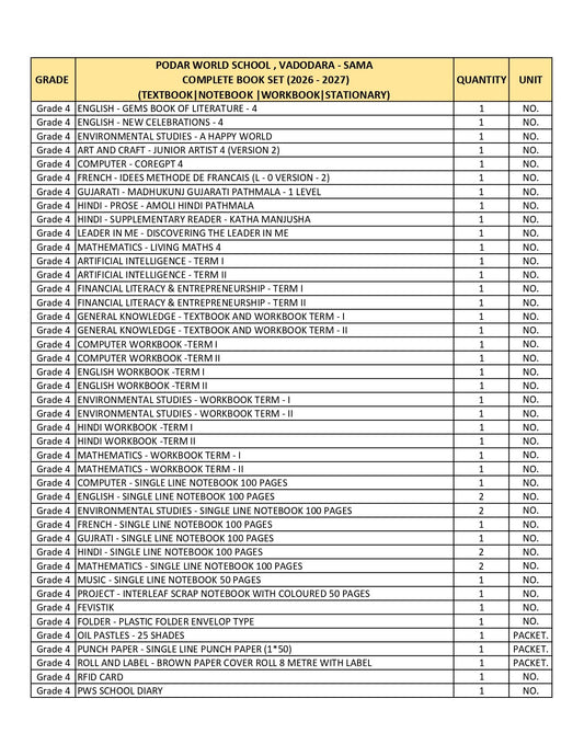 CBSE Grade 4 (Podar World School Sama) (A.Y. 2026-27)