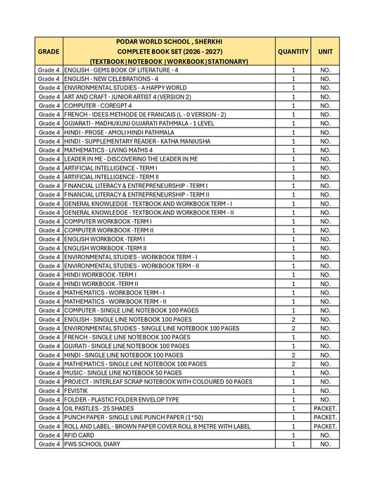 CBSE Grade 4 (Podar World School Ankleshwar) (A.Y. 2026-27)