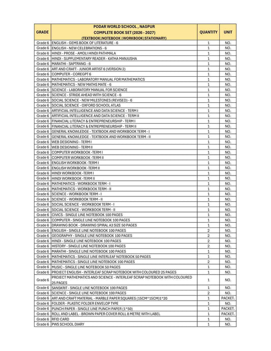 CBSE Grade 6 (Podar World School Nagpur) (A.Y. 2026-27)