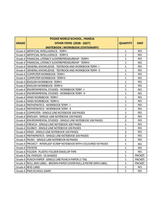 CBSE Grade 4 (Podar World School Maneja) (A.Y. 2026-27)