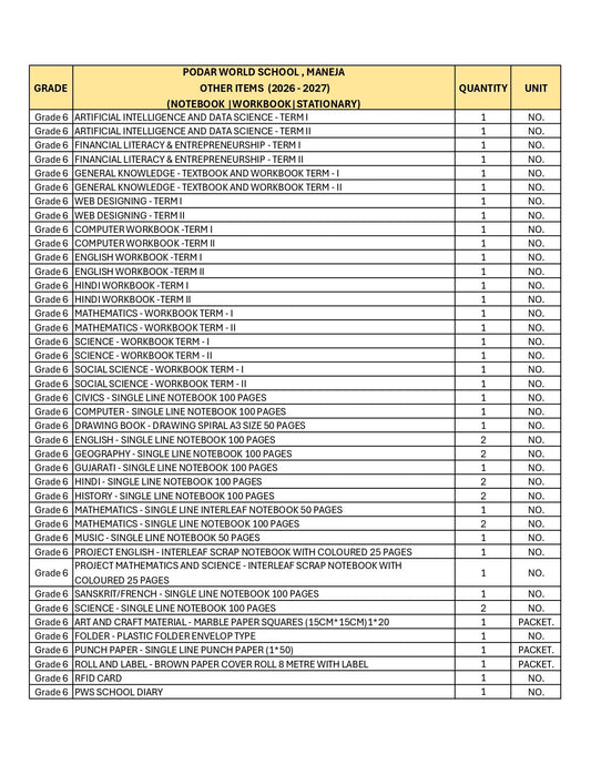 CBSE Grade 6 - (Podar World School Maneja) (A.Y. 2026-27)