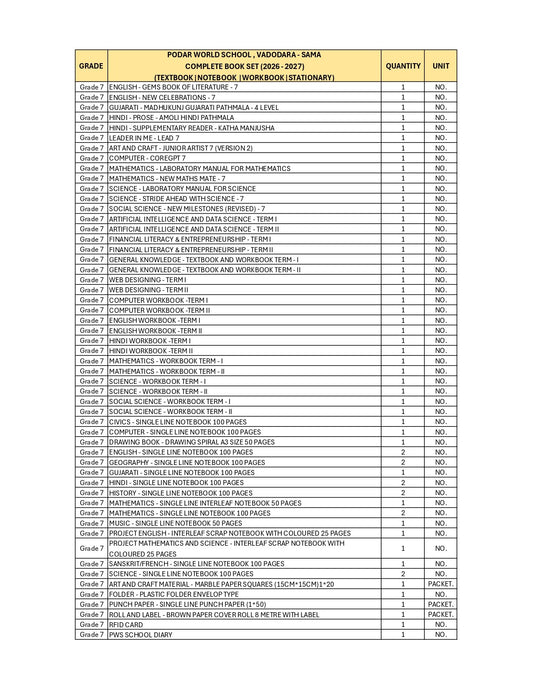 CBSE Grade 7 - (Podar World School Sama) (A.Y. 2026-27)