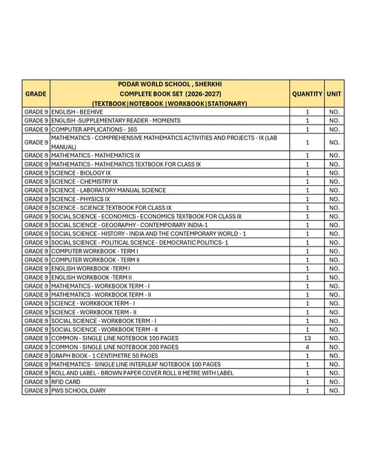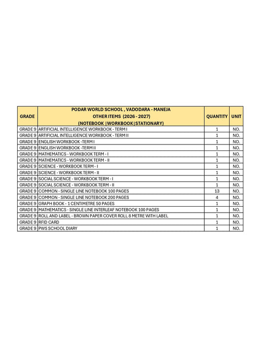 CBSE Grade 9 - (Podar World School Maneja) (A.Y. 2026-27)