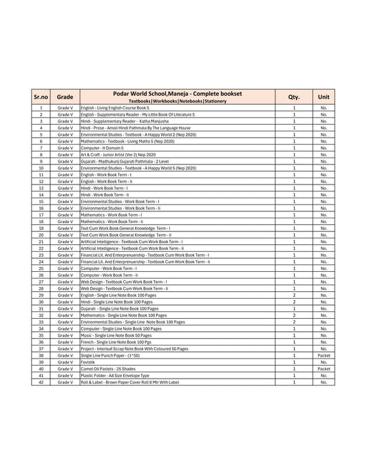 CBSE Grade 5 - (Podar World School Maneja) (A.Y. 2025-26)