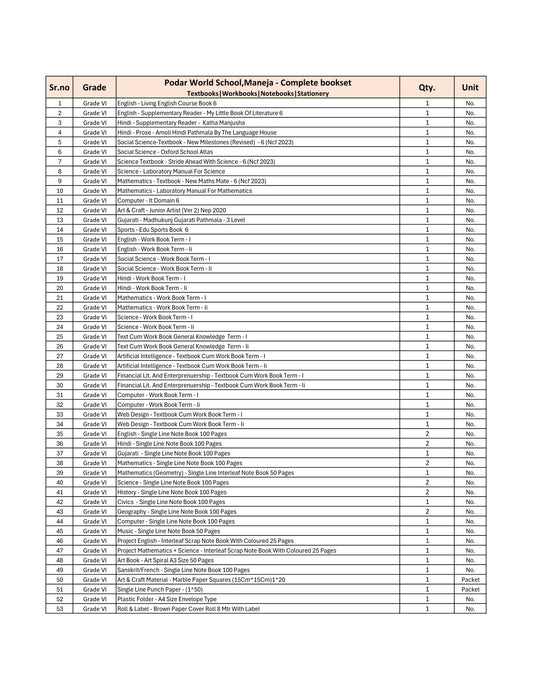 CBSE Grade 6 - (Podar World School Maneja) (A.Y. 2025-26)