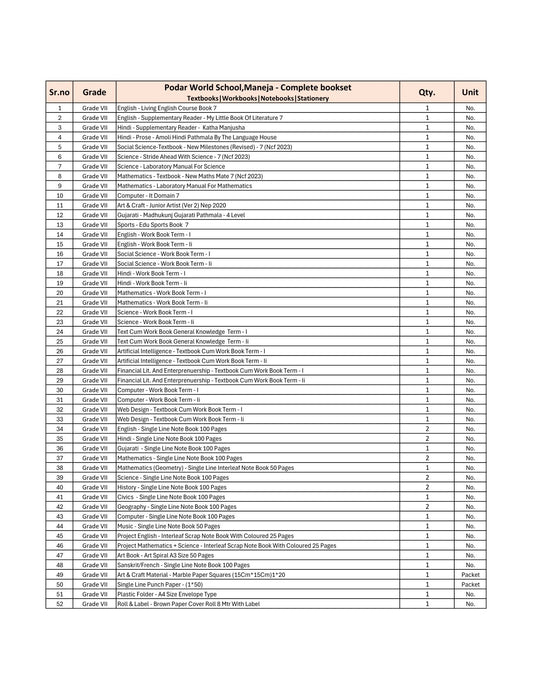 CBSE Grade 7 - (Podar World School Maneja) (A.Y. 2025-26)