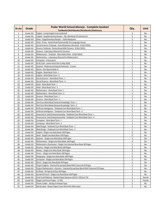 CBSE Grade 8 - (Podar World School Maneja) (A.Y. 2025-26)