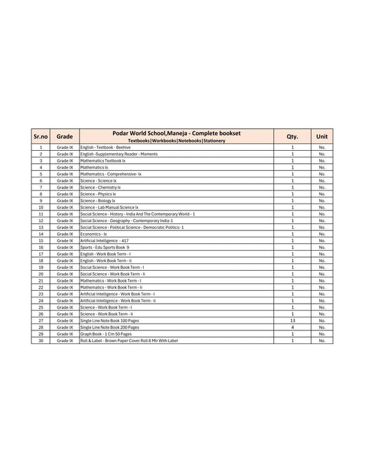 CBSE Grade 9 - (Podar World School Maneja) (A.Y. 2025-26)