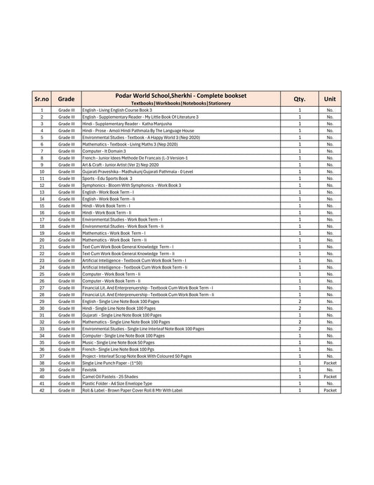 CBSE Grade 3 (Podar World School Sherkhi) (A.Y. 2025-26)