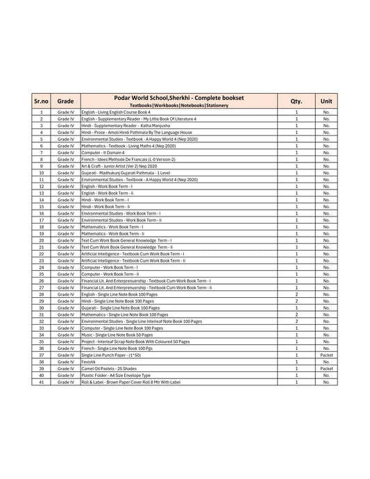 CBSE Grade 4 (Podar World School Sherkhi) (A.Y. 2025-26)