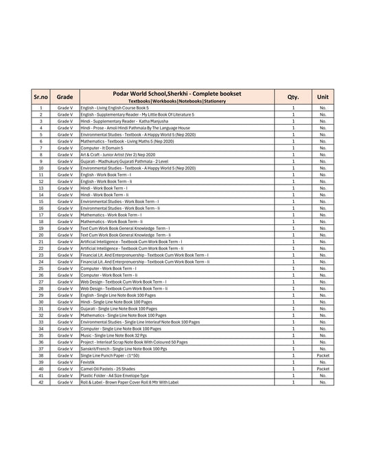CBSE Grade 5 - (Podar World School Sherkhi) (A.Y. 2025-26)