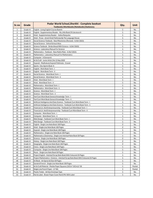 CBSE Grade 6 - (Podar World School Sherkhi) (A.Y. 2025-26)