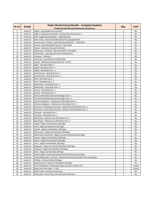 CBSE Grade 7 - (Podar World School Sherkhi) (A.Y. 2025-26)